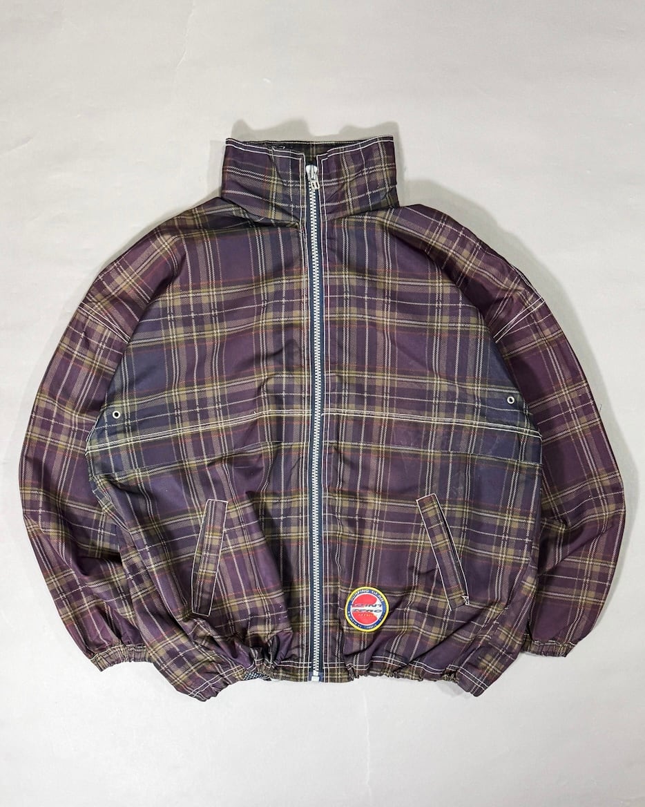 Check zip-up wide silhouette blouson