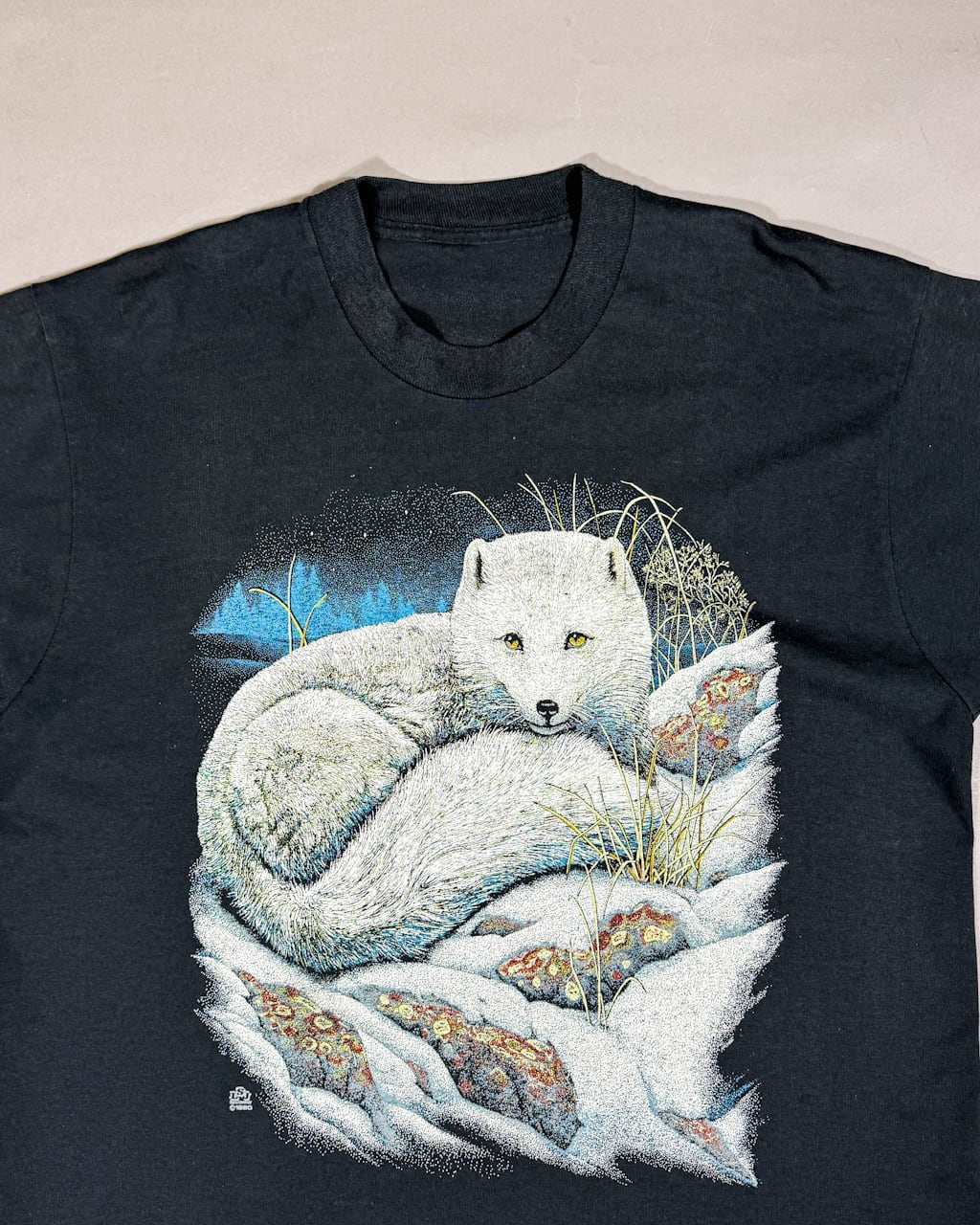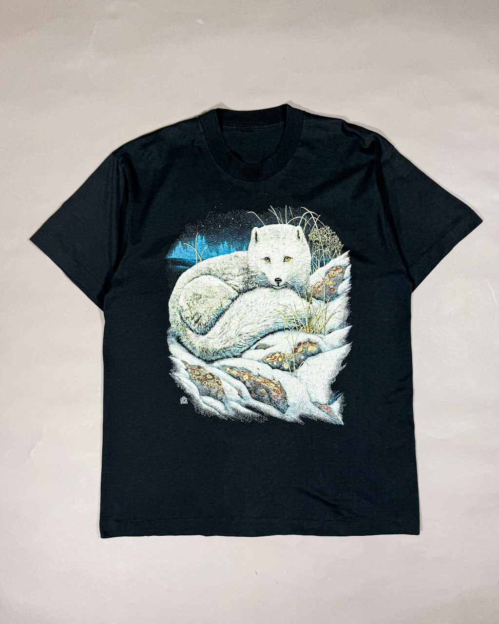 90's print tee "狼" Made in USA