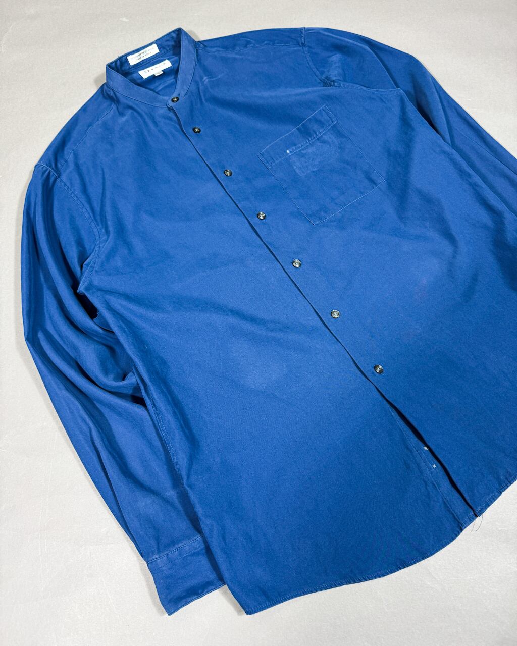 Smooth poly stand collar shirt